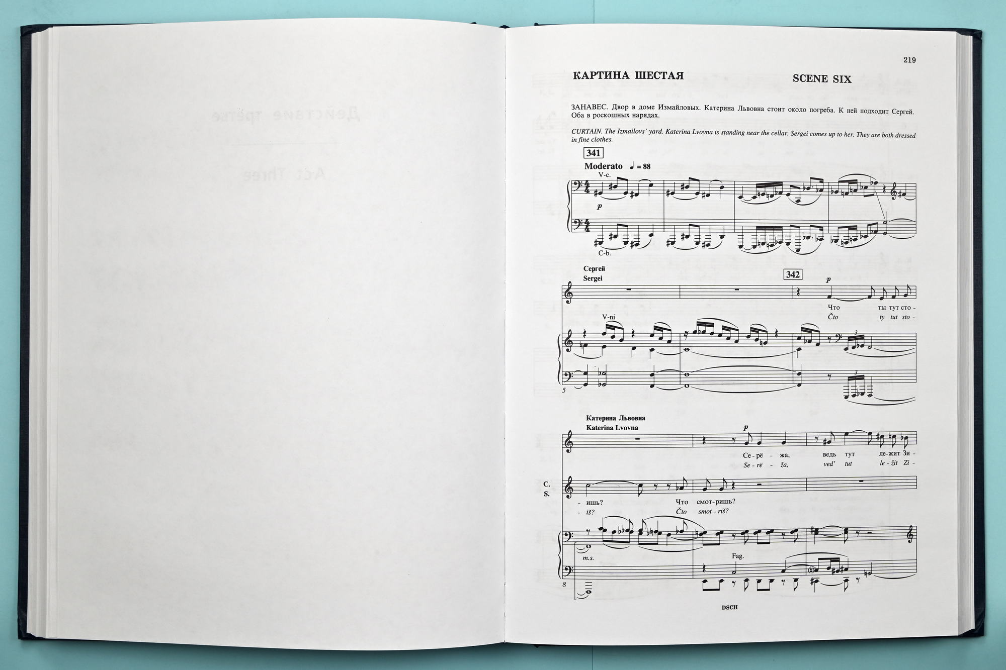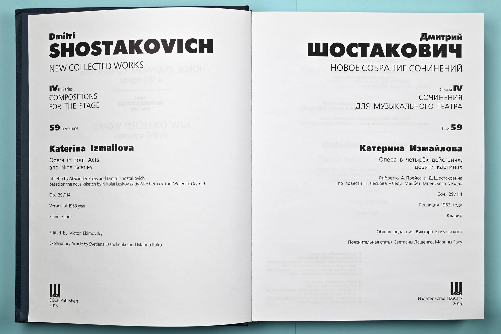 The full score of the first version of the opera was not published during Shostakovich’s lifetime. In the second half of the 1970s, the composer’s widow, Irina Shostakovich, sent the copy of the manuscript she had to Mstislav Rostropovich for performing and recording. In 1978, this version of the work was recorded by Rostropovich and the musician handed the notation he had to Hans Sikorski Publishers. The publisher also received world rights from the heirs to hire out the first version of the opera. Later, when conditions developed in Russia for performing and publishing the first version of the work, Hans Sikorski Publishers handed a copy to DSCH Publishers for hire of the first version of the opera in the composer’s homeland.