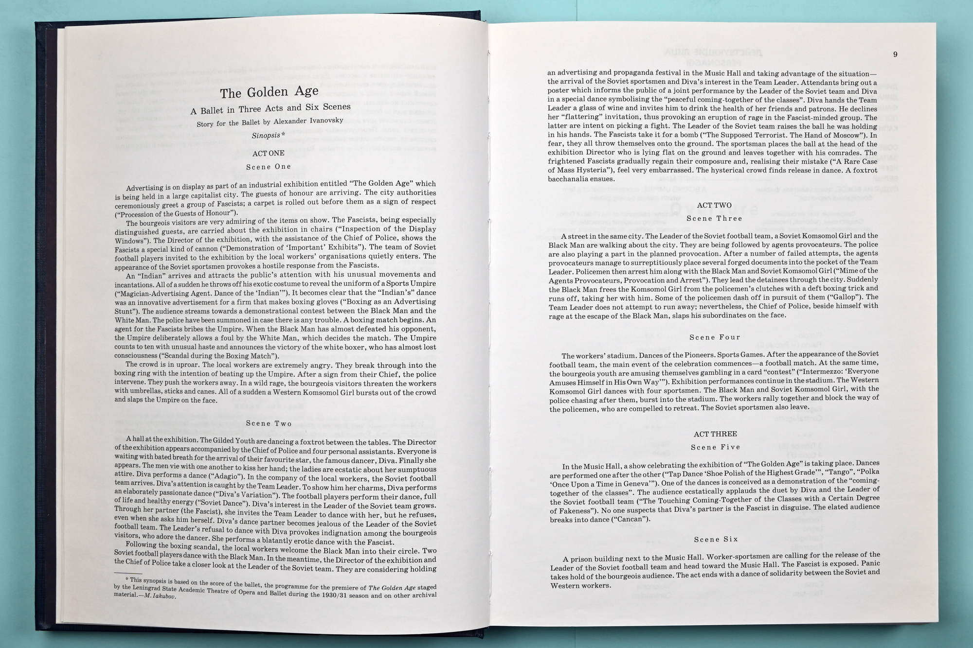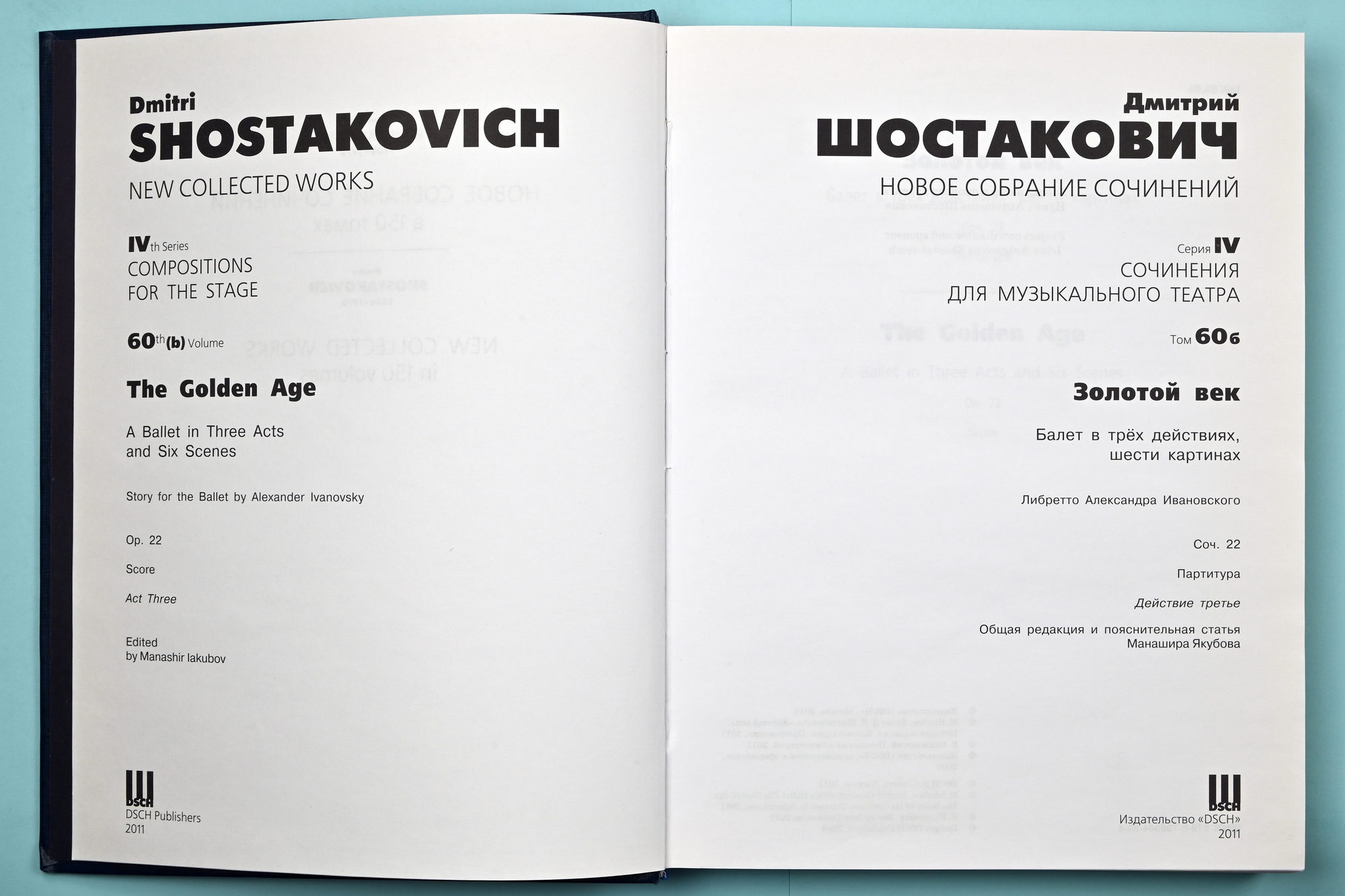 The published score of the ballet The Golden Age is the final author’s version of the work that corresponds to the staging by the Leningrad State Academic Theatre of Opera and Ballet (GATOB) in 1930.