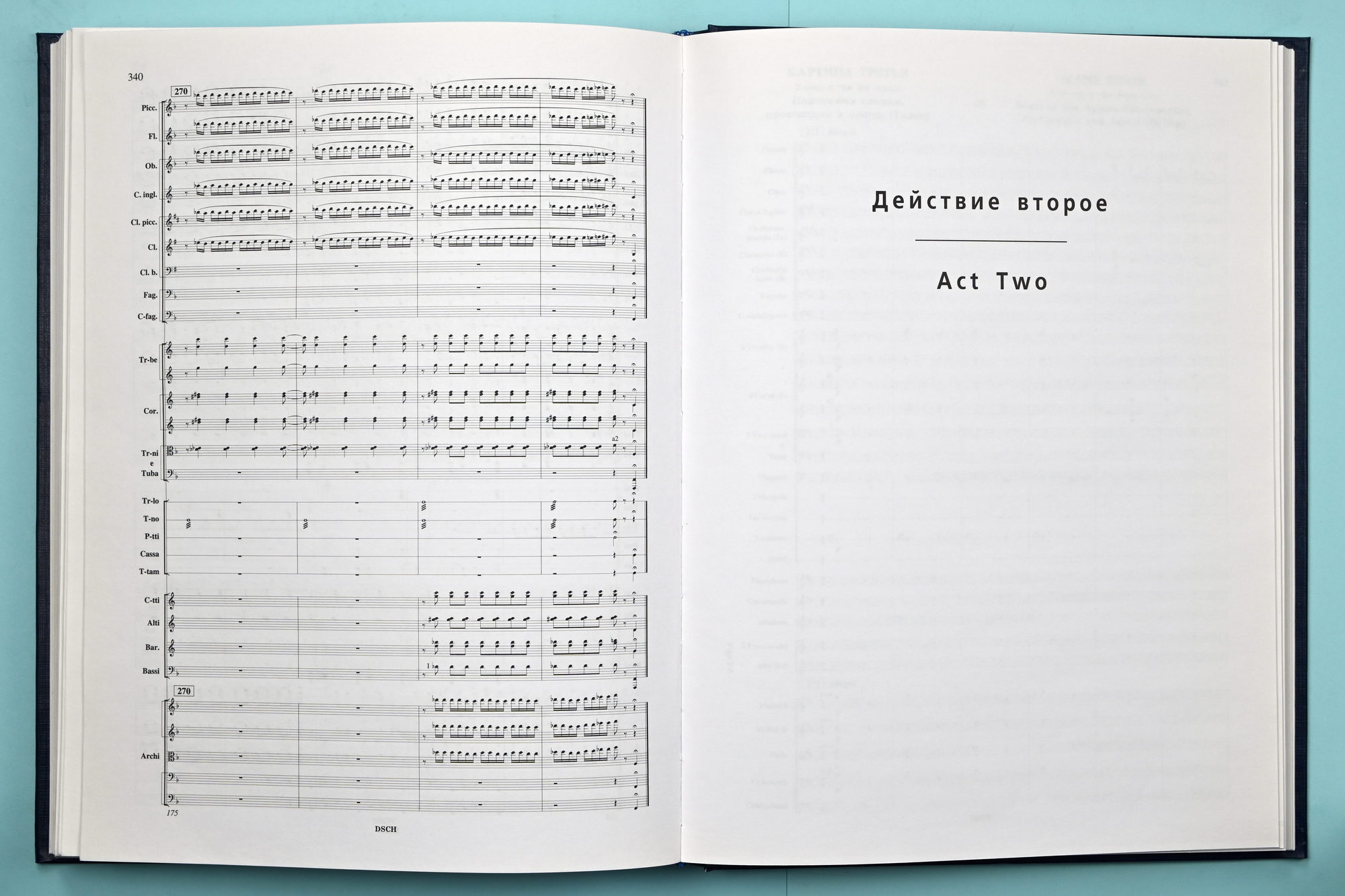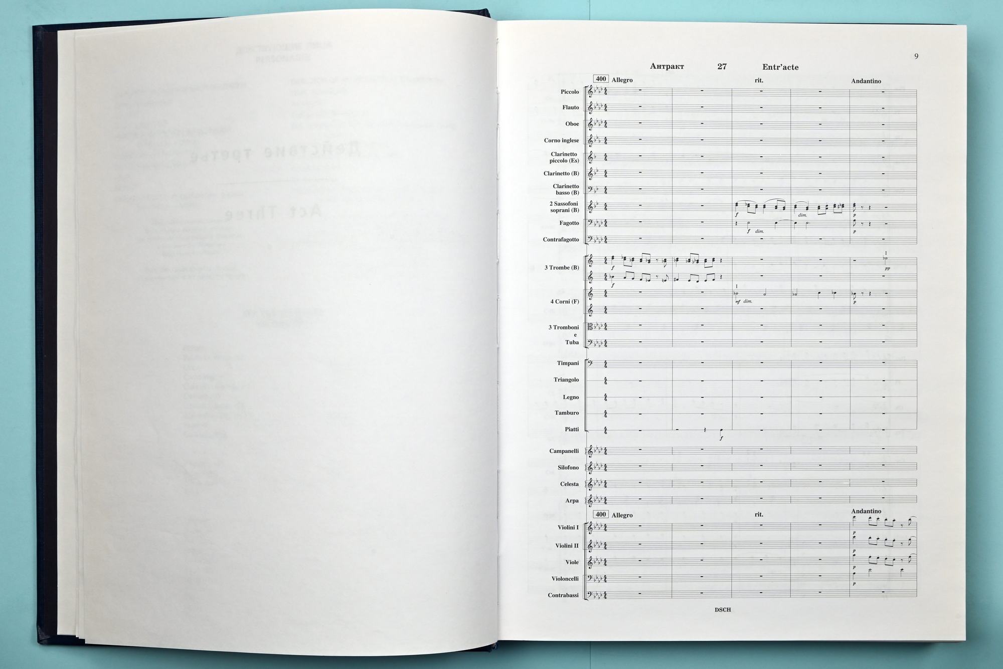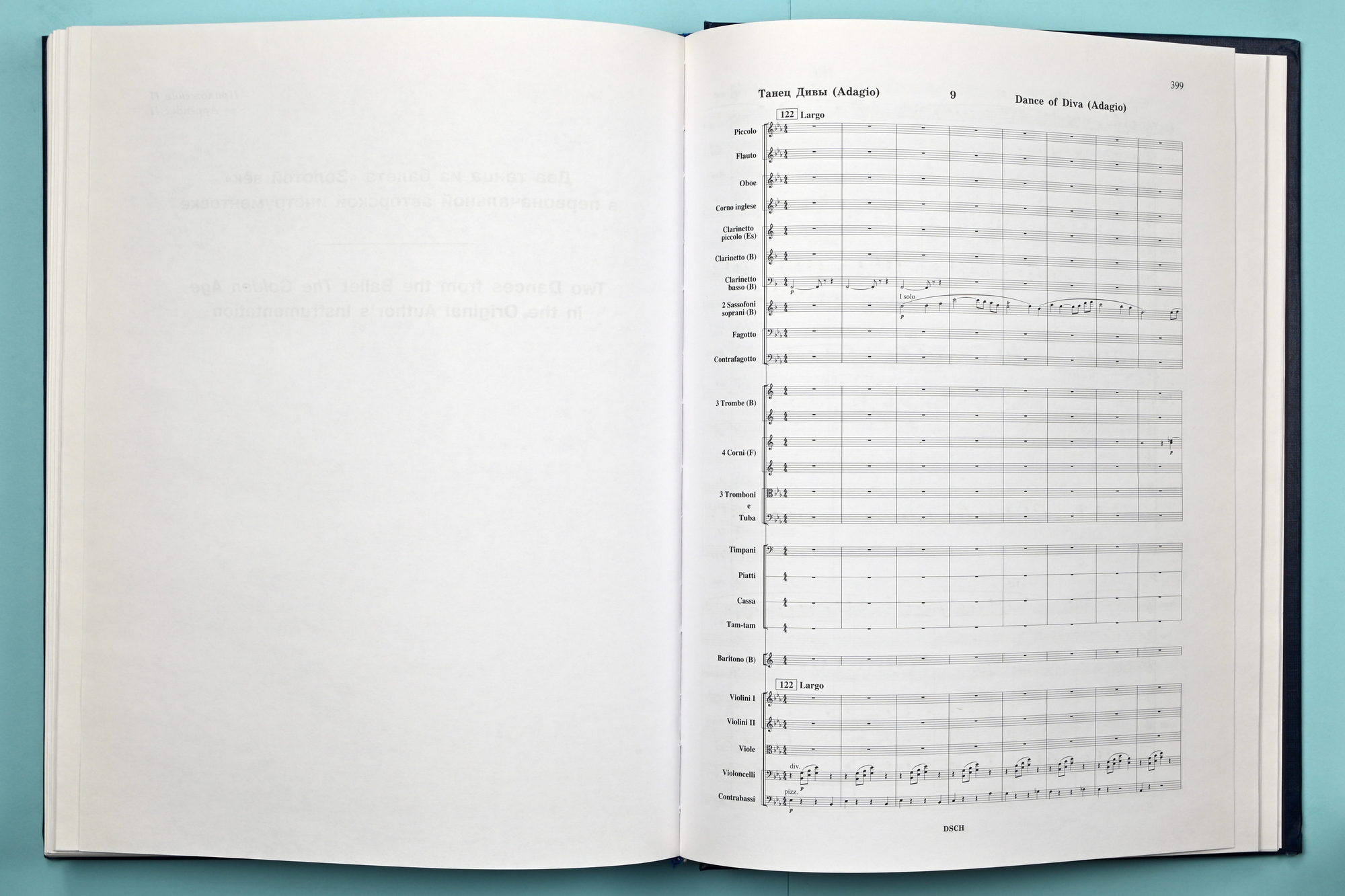 During preparation of the publication, all the available author’s manuscripts and the hand-written score for hire at DSCH Publishers were used. The hand-written score was based on the score kept in the theatre’s library. Conductor Mikhail Yurovsky and music expert Sergey Sapozhnikov looked for the music notations (score and piano score) at the library. It transpired that the ballet score has not survived in full. Several of the items missing in the score were restored with the help of Director of the Leningrad Branch of the USSR Music Fund P. Radchik based on the orchestral parts that have survived. N. Kruglyakov introduced the parts into the score. Composer Veniamin Basner did the final editing of the score.