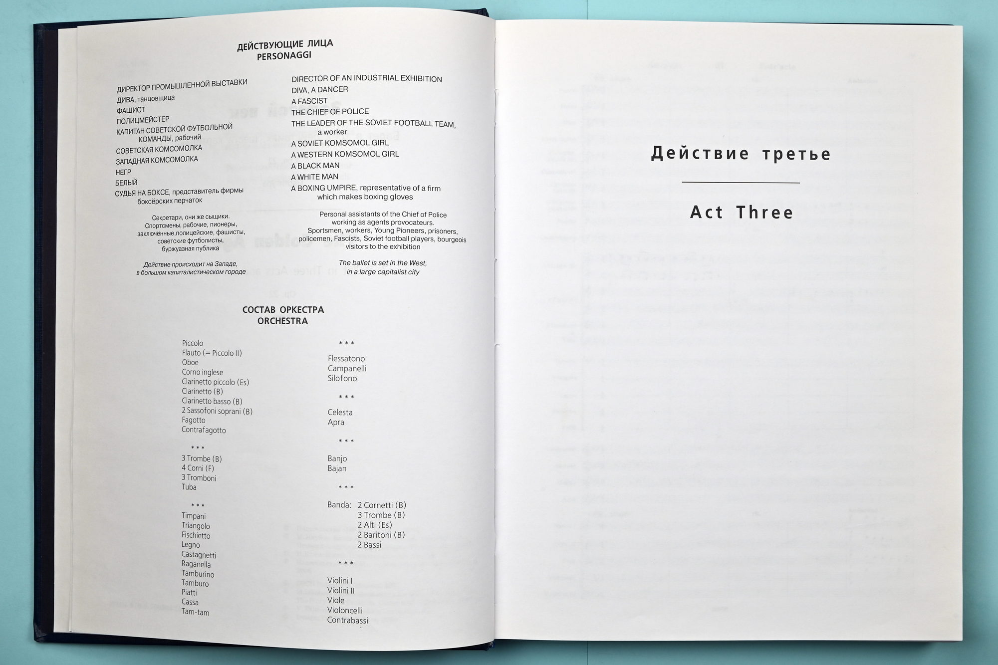 When work on restoring the score was finished, the author’s manuscript of the score of The Golden Age submitted by Shostakovich to GATOB on 1 November 1929 was found at Universal Edition Publishers in Vienna. Comparison of the two scores showed that during preparations for the performance, the composer made significant changes to the orchestration. Some of the items were also rearranged, the overall composition of the ballet was dramatically changed to rectify the disproportion in length of the second and third acts (see more on this in the article in this volume), and many changes were made to the names of the items, the texts of the stage directions, and even the names of the cast.