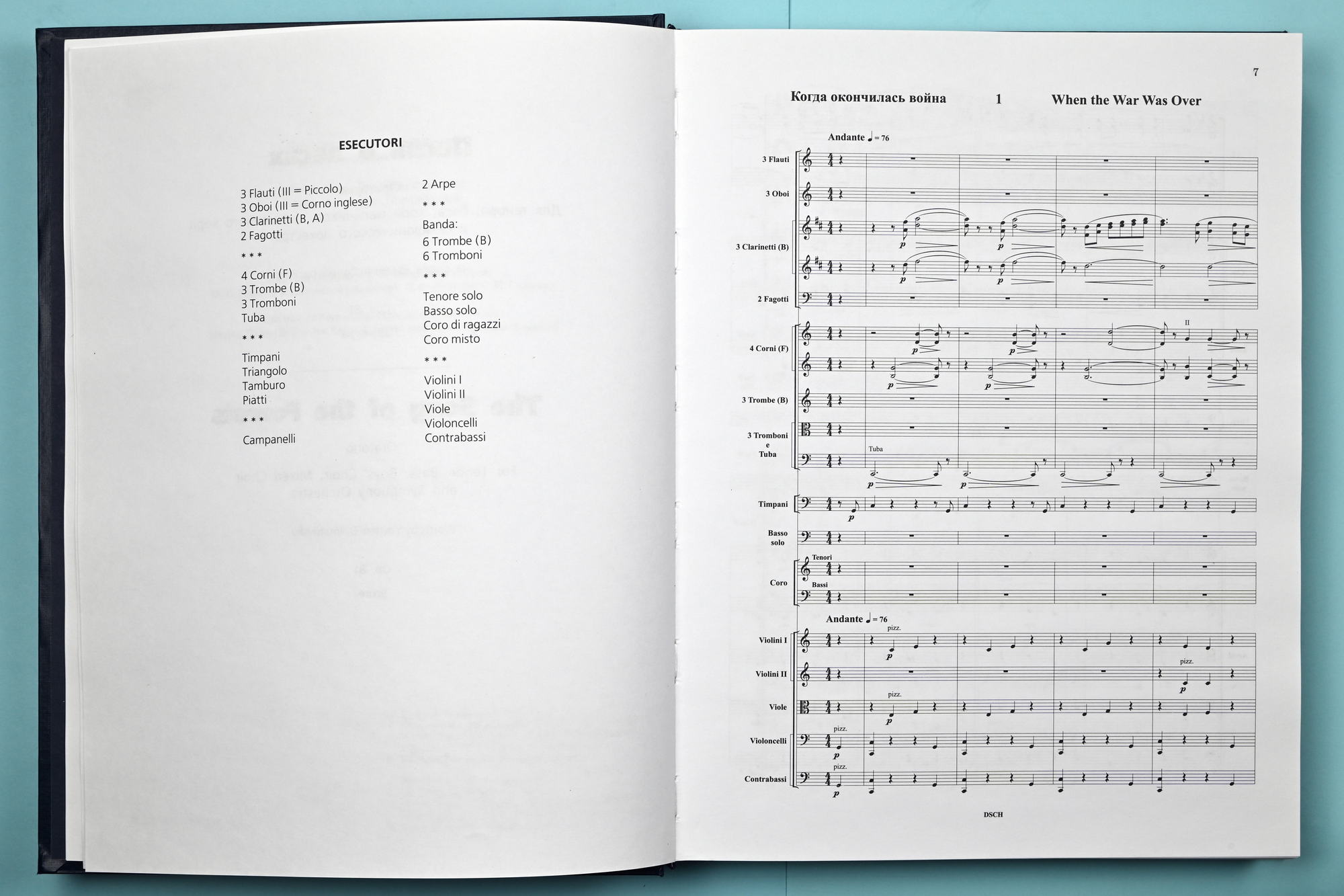 Oratorio for Tenor, Bass, boys’ choir, mixed choir and symphony orchestra (with 2 harps and additional brass) to the text by Yevgeni Dolmatovsky: