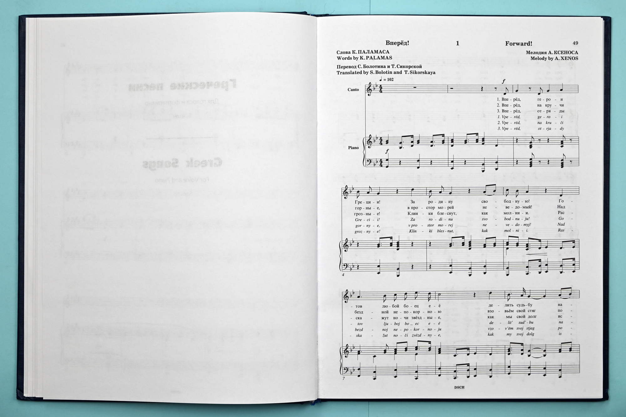 - Forward! Melody by A. Xenos, words by K. Palamas. Translated by S. Bolotin and T. Sikorskaya.