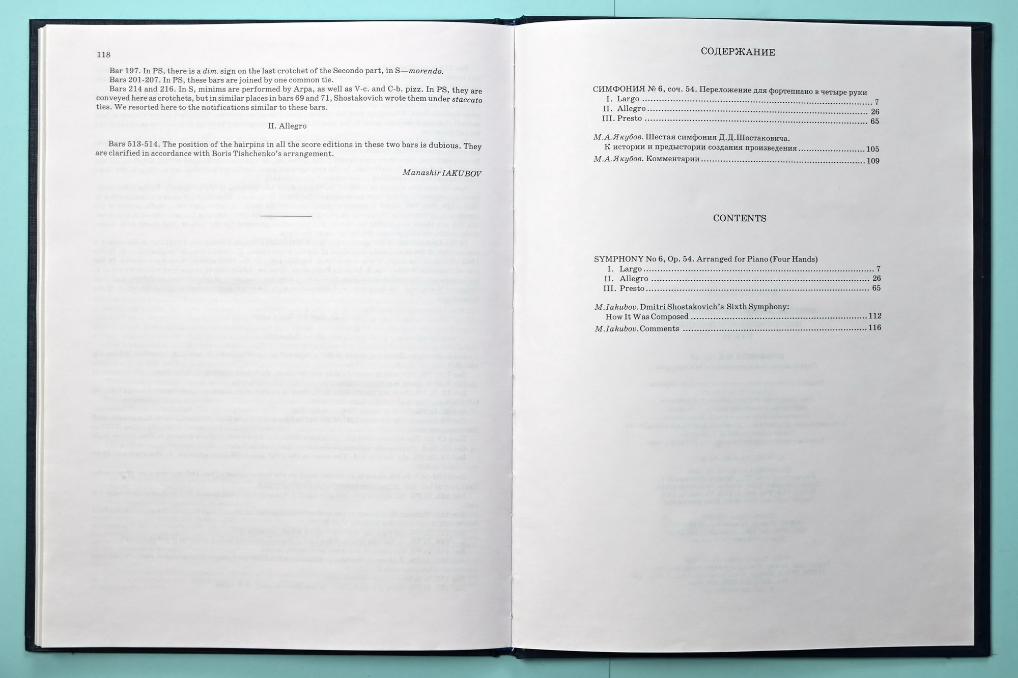Публикуемое в настоящем томе Нового собрания сочинений Д. Д. Шостаковича переложение первой части Шестой симфонии для фортепиано в 4 руки сделано самим композитором. Автограф этой работы хранится в личном фонде Д. Д. Шостаковича в Государственном центральном музее музыкальной культуры имени М. И. Глинки (ГЦММК, ф.32, ед. хр. 67).