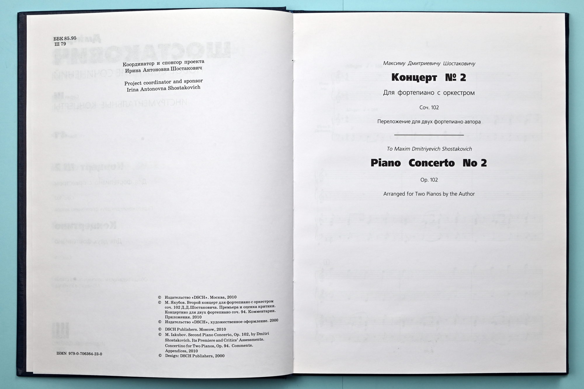 Концерт для фортепиано с оркестром № 2. Соч. 102. Клавир. Концертино для двух фортепиано. Соч. 94.