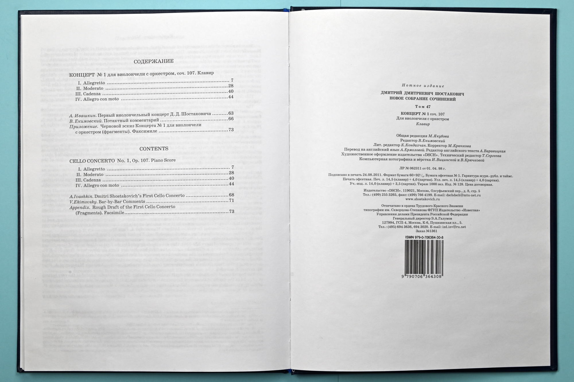 Концерт для виолончели с оркестром № 1. Соч. 107. Клавир.