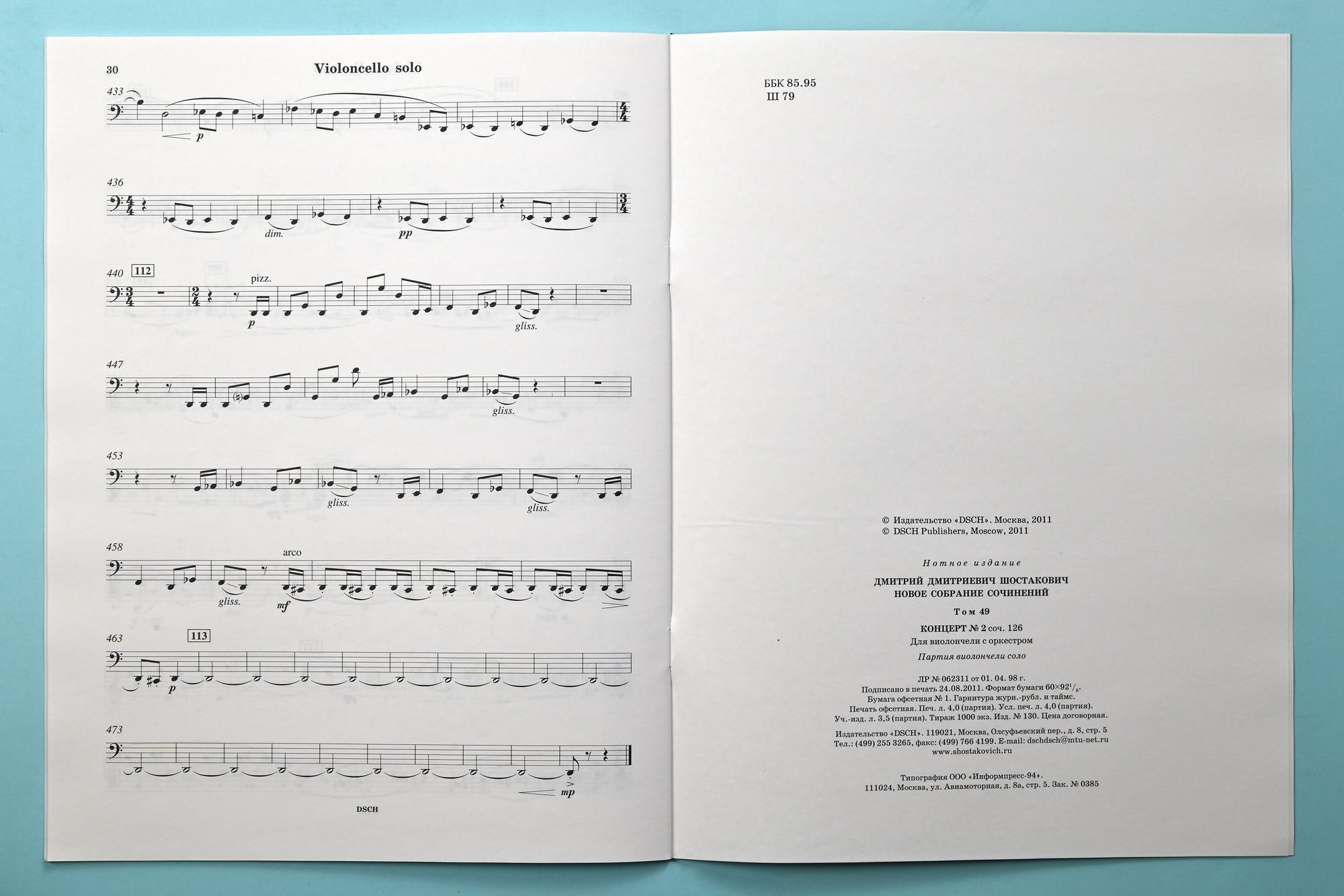 С приложением партии виолончели в редакции Мститслава Ростроповича.