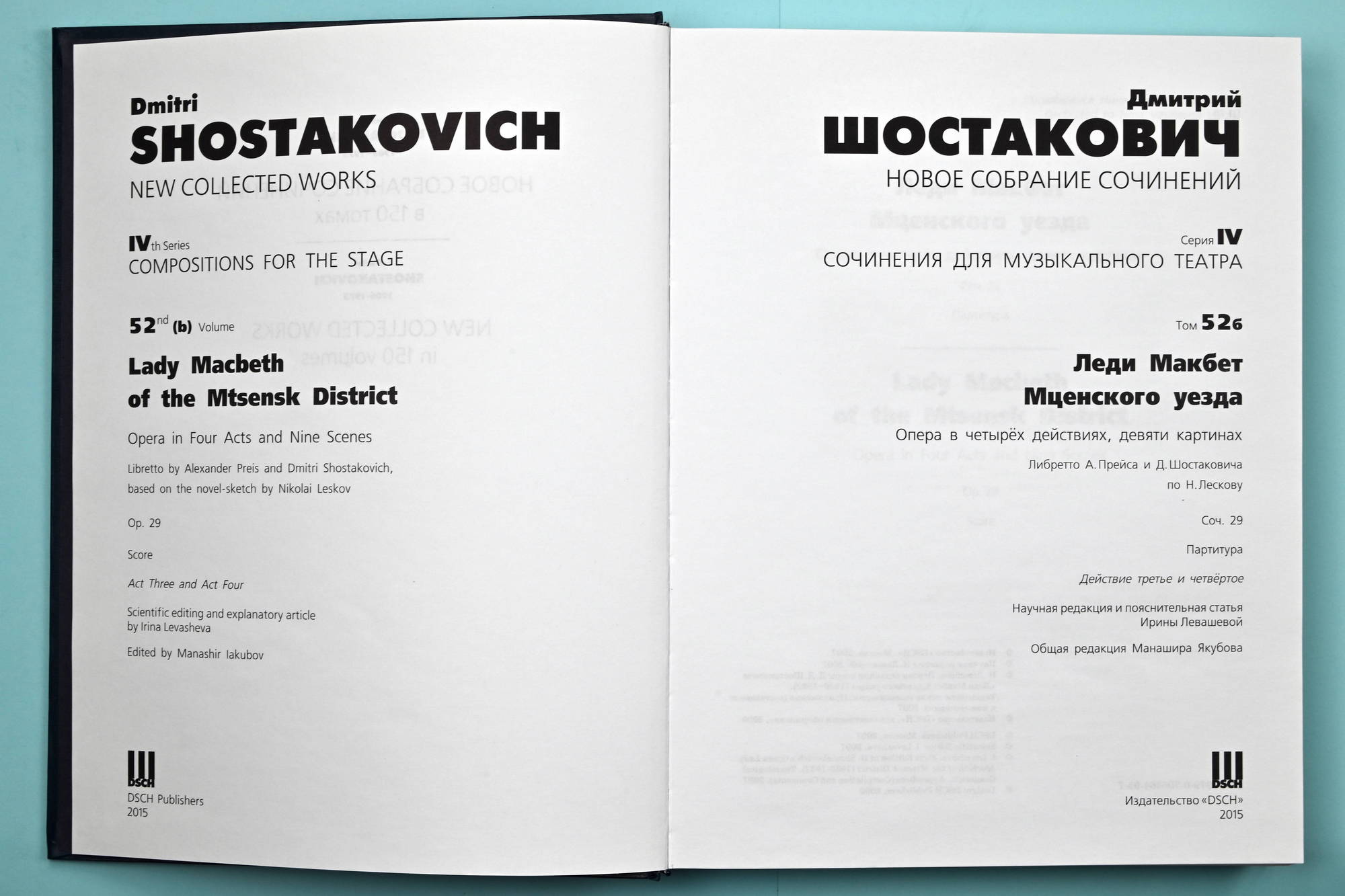 «Леди Макбет Мценского уезда». Соч. 29. Опера. Партитура. (В двух томах.)