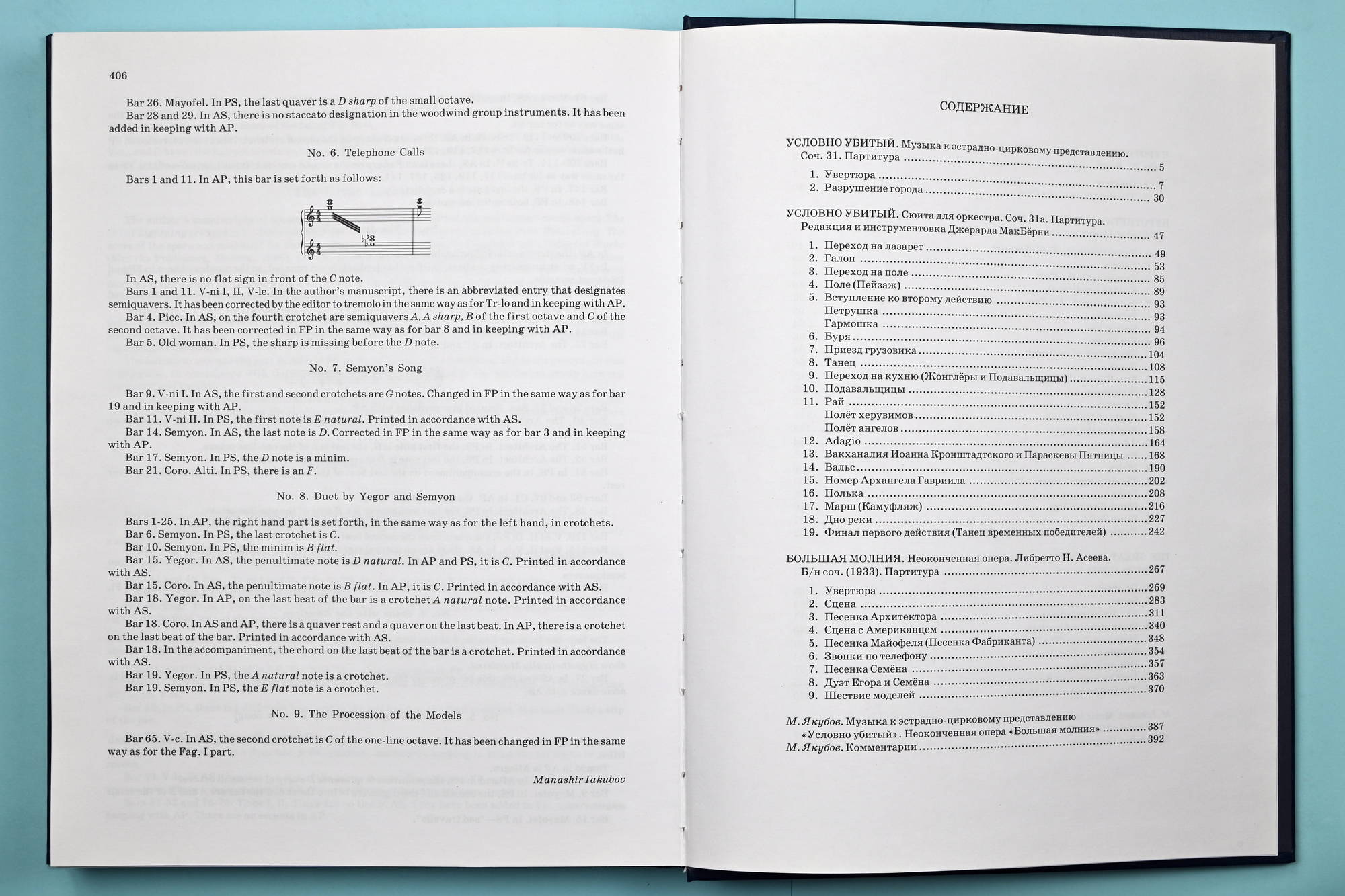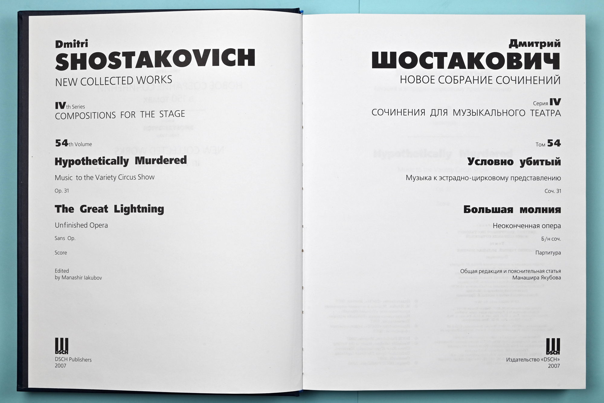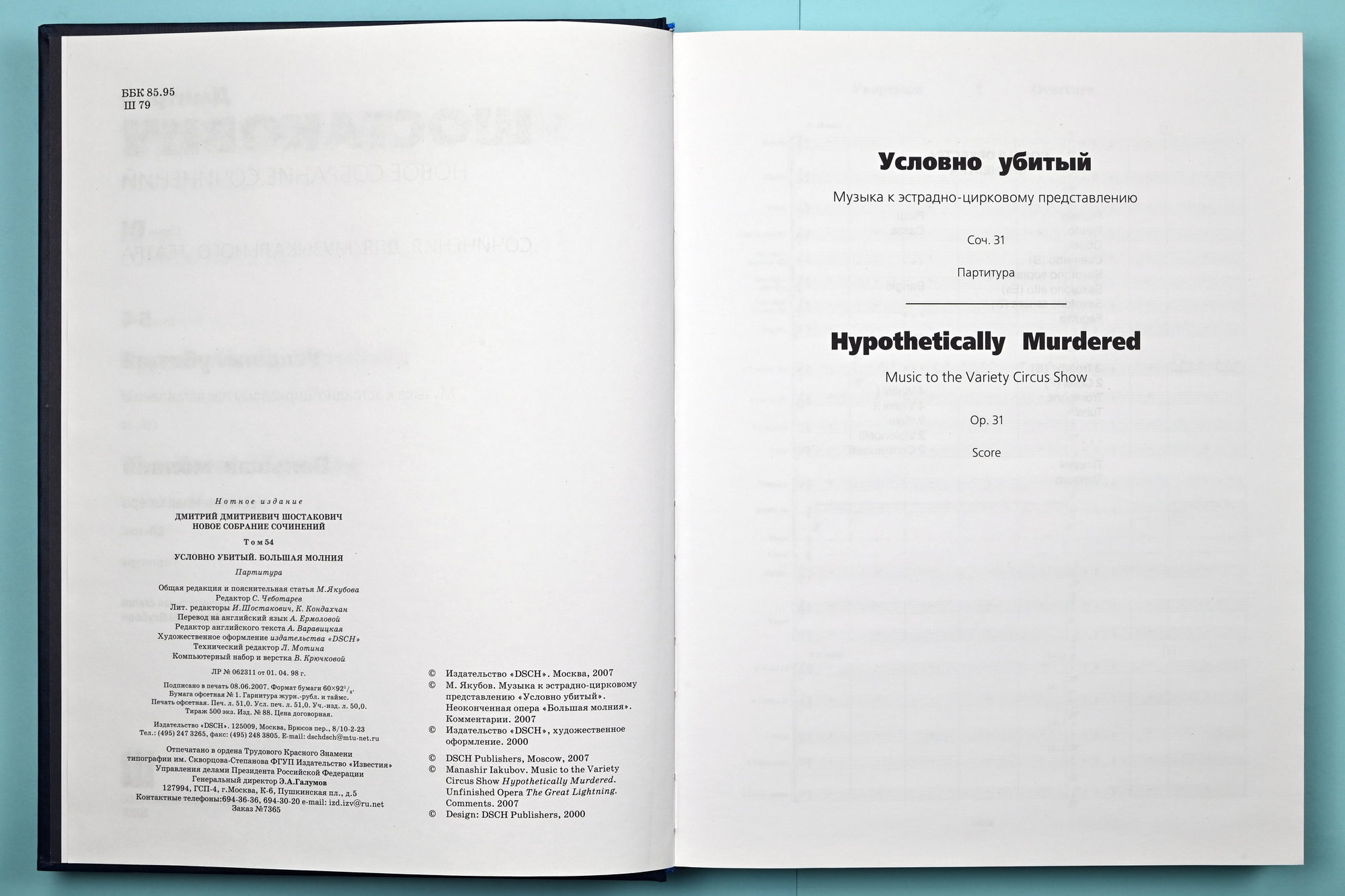 «Условно убитый». Соч. 31. Музыка к эстрадно-цирковому представлению. Инструментовка Дж. Мак Бёрни. «Большая молния». Б/н соч. Редактор Сергей Чеботарев. Пояснительная статья Манашира Якубова.