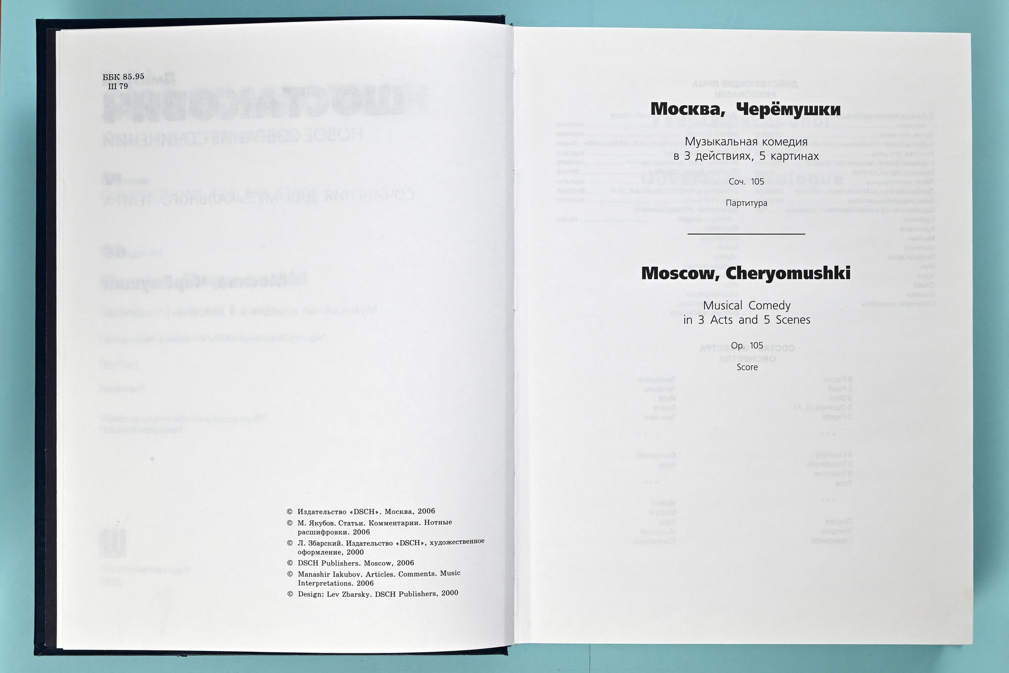 При подготовке настоящей публикации, помимо издания партитуры 1986 года, были использованы: упомянутое выше первое издание клавира; издание клавира в томе 25 Собрания сочинений Д.Д. Шостаковича (М., Музыка, 1986); авторизованная рукописная копия клавира (частное собрание); чистовые и беловые автографы, а также авторизованные рукописные копии отдельных номеров клавира, хранящиеся в Архиве Д.Д. Шостаковича, и, наконец, оркестровые голоса, сольные и хоровые партии музыкальной комедии «Москва, Черёмушки» из библиотеки Московского театра оперетты.