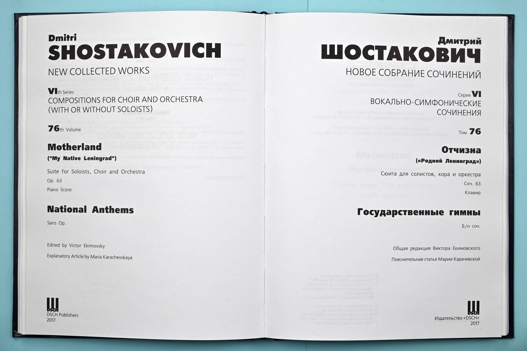 Сюита для солистов, хора и оркестра на слова С. Алымова. Соч. 63. Государственные гимны. Б/н соч. Редактор Виктор Екимовский. Пояснительная статья Марии Карачевской.