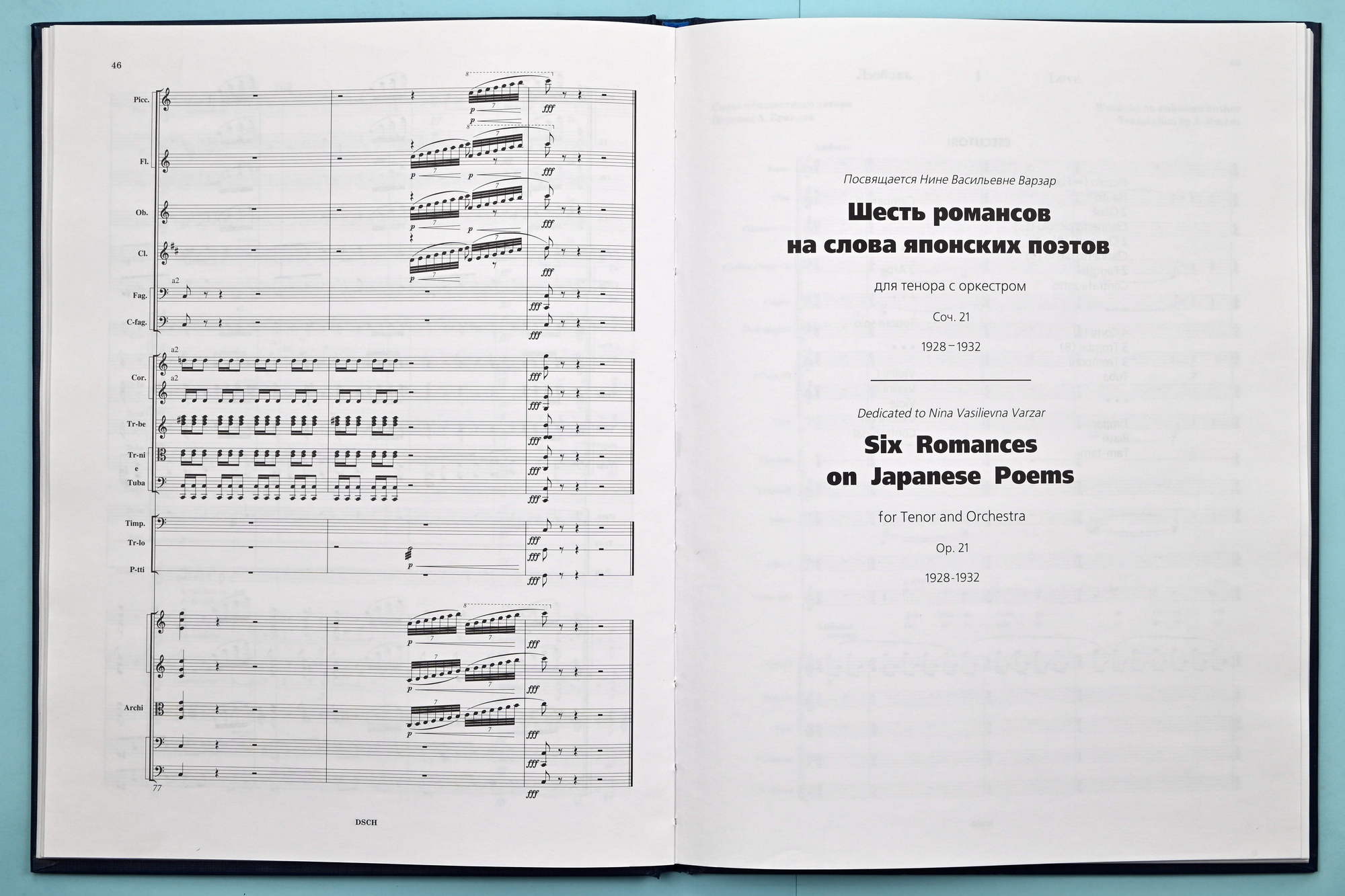 Для тенора с оркестром. Соч. 21. 1928 – 1932