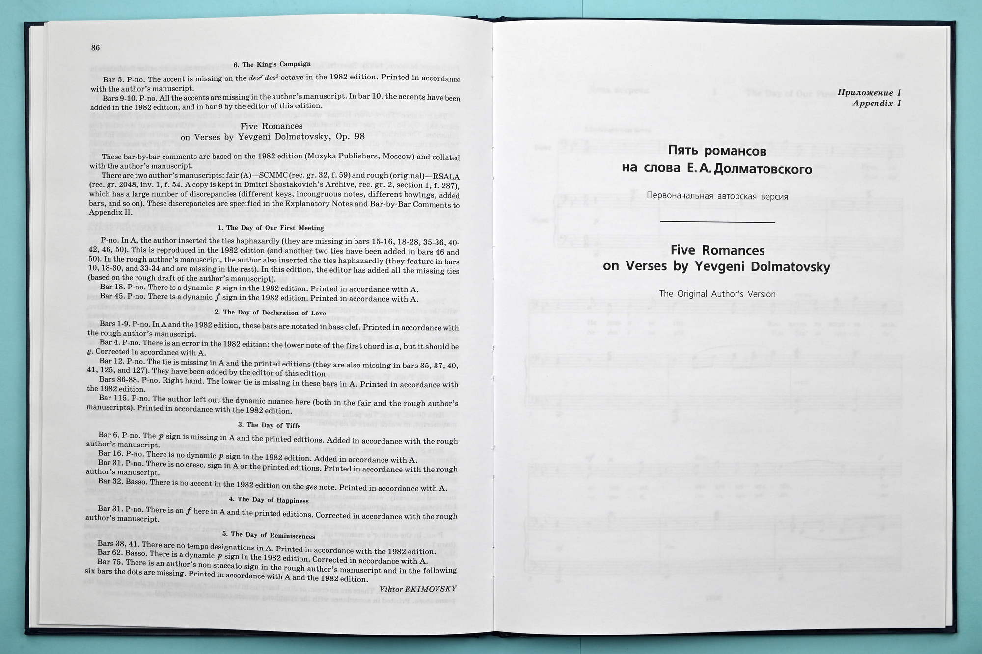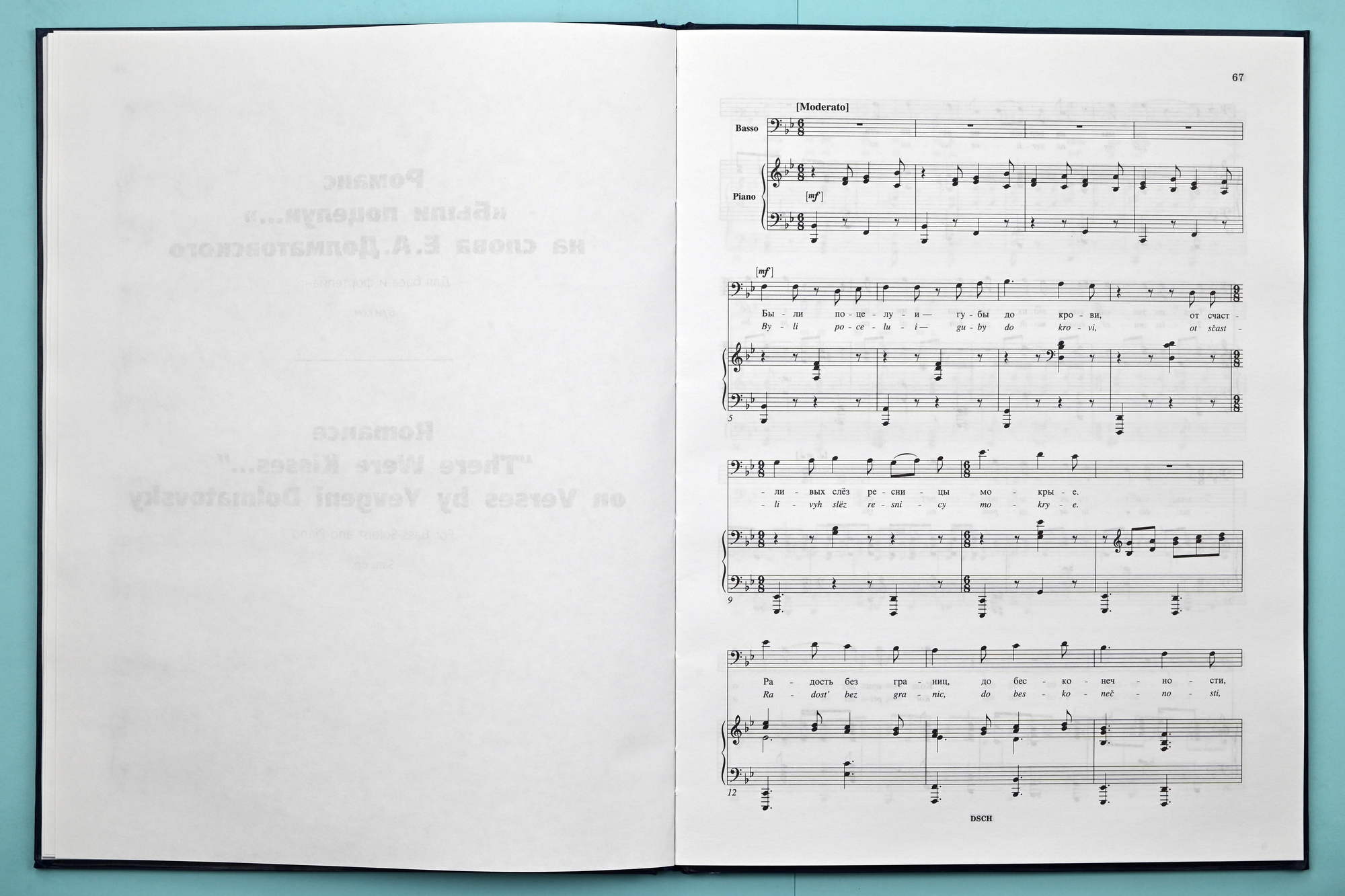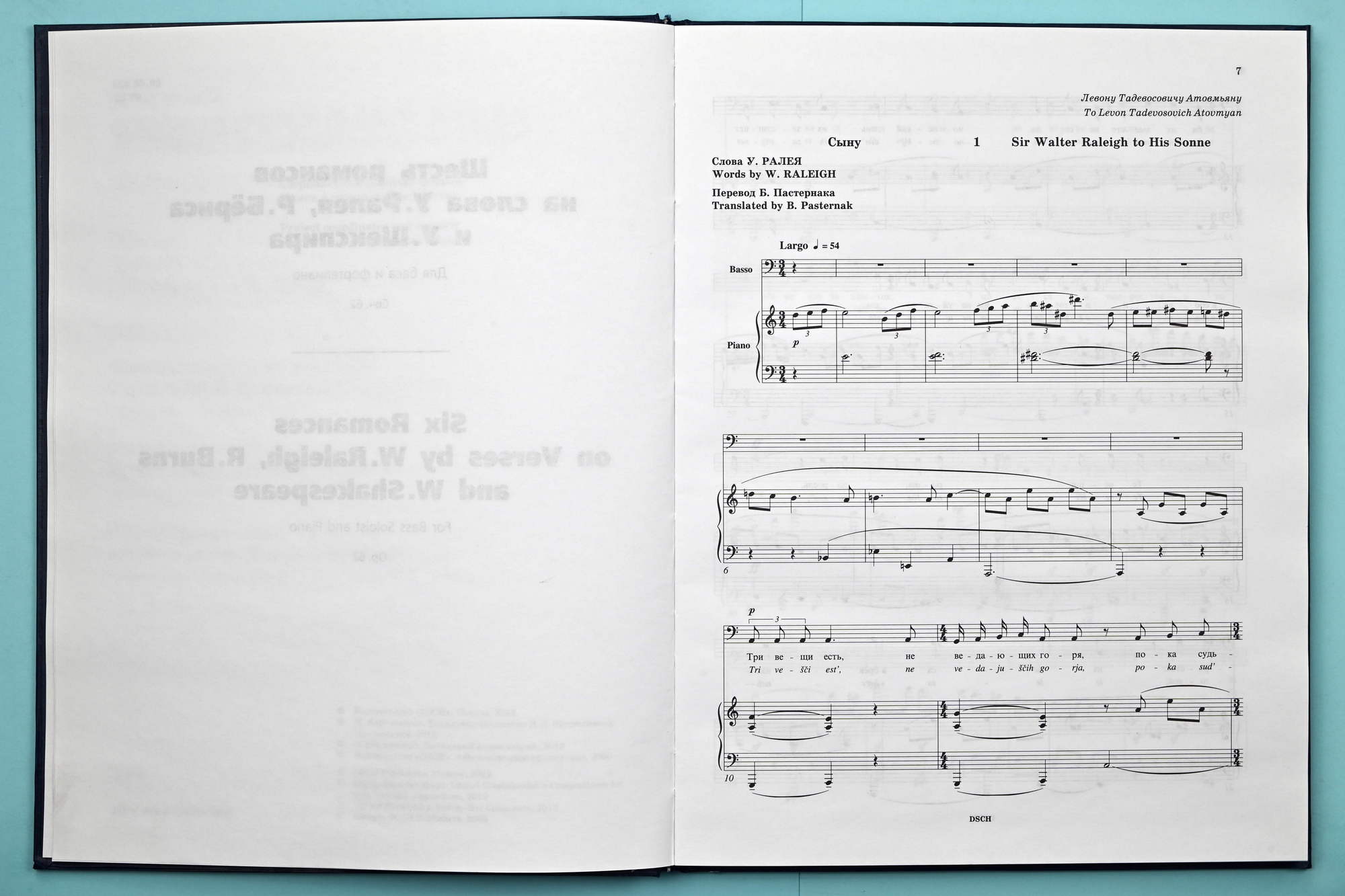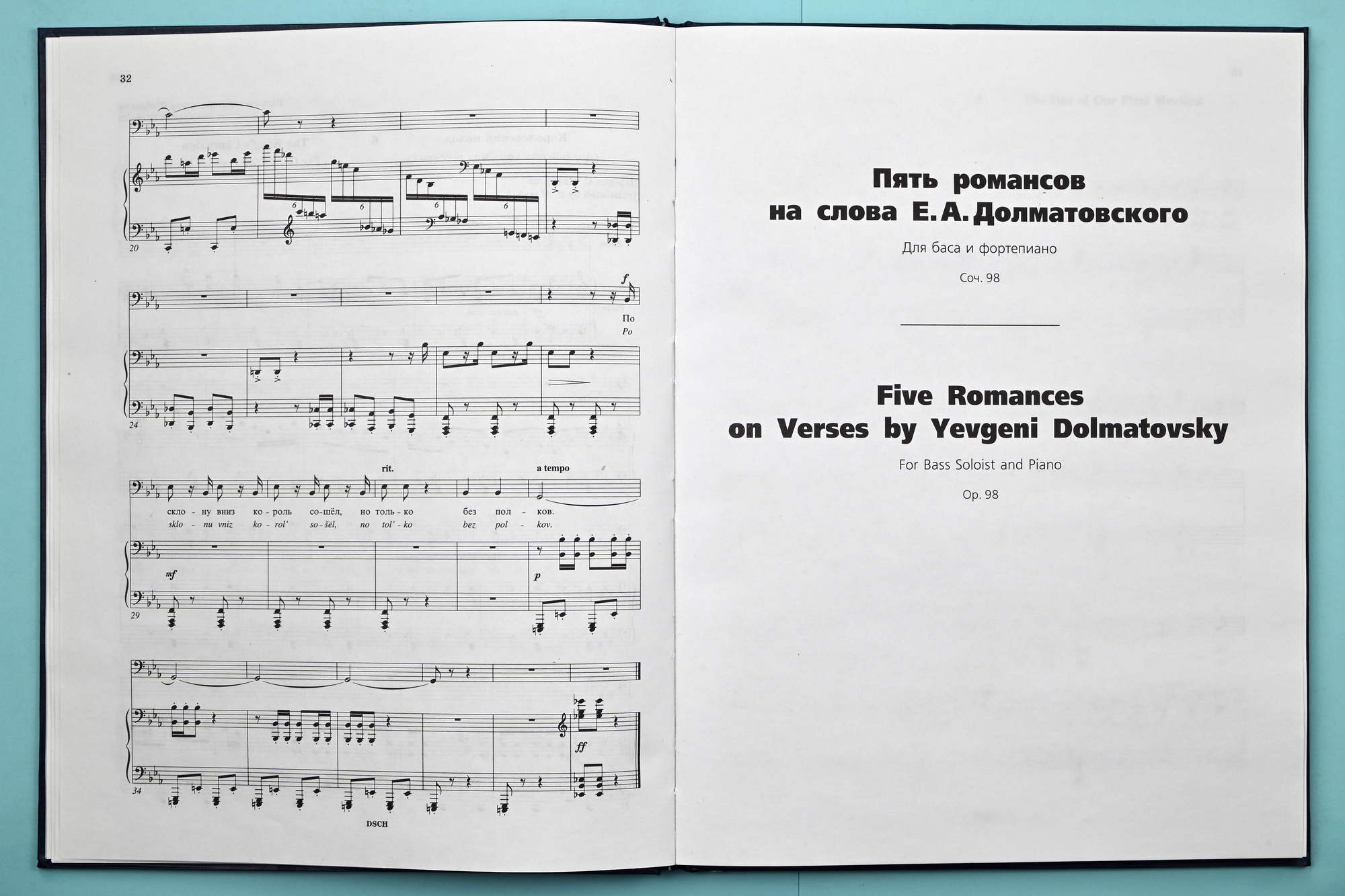 Шесть романсов на слова У. Ралея, Р. Бёрнса и У. Шекспира. Соч. 62. Пять романсов на слова Е. Долматовского. Соч. 98. «Были поцелуи...» на слова Е. Долматовского. Б/н соч. Для баса и фортепиано.