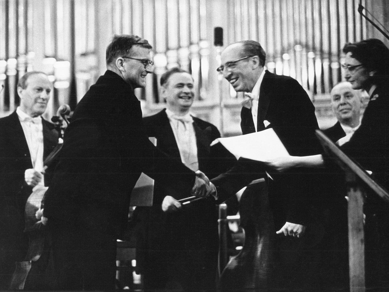 Шостакович Дмитрий Дмитриевич, рождения 1906 года, русский, беспартийный. Окончил в 1925 году Ленинградскую консерваторию. С 1957 года – секретарь Союза композиторов СССР. Крупнейший и авторитетнейший композитор нашего времени. Народный артист СССР. Лауреат Ленинской и Сталинской премий, премии им. Сибелиуса. Лауреат международной премии мира. Член музыкальных академий Швеции, Италии и ГДР, член американской академии наук, доктор Оксфордского университета, Композитор Ордена французского искусства, профессор Мексиканской консерватории. Награжден двумя орденами Ленина, орденом Трудового Красного Знамени».